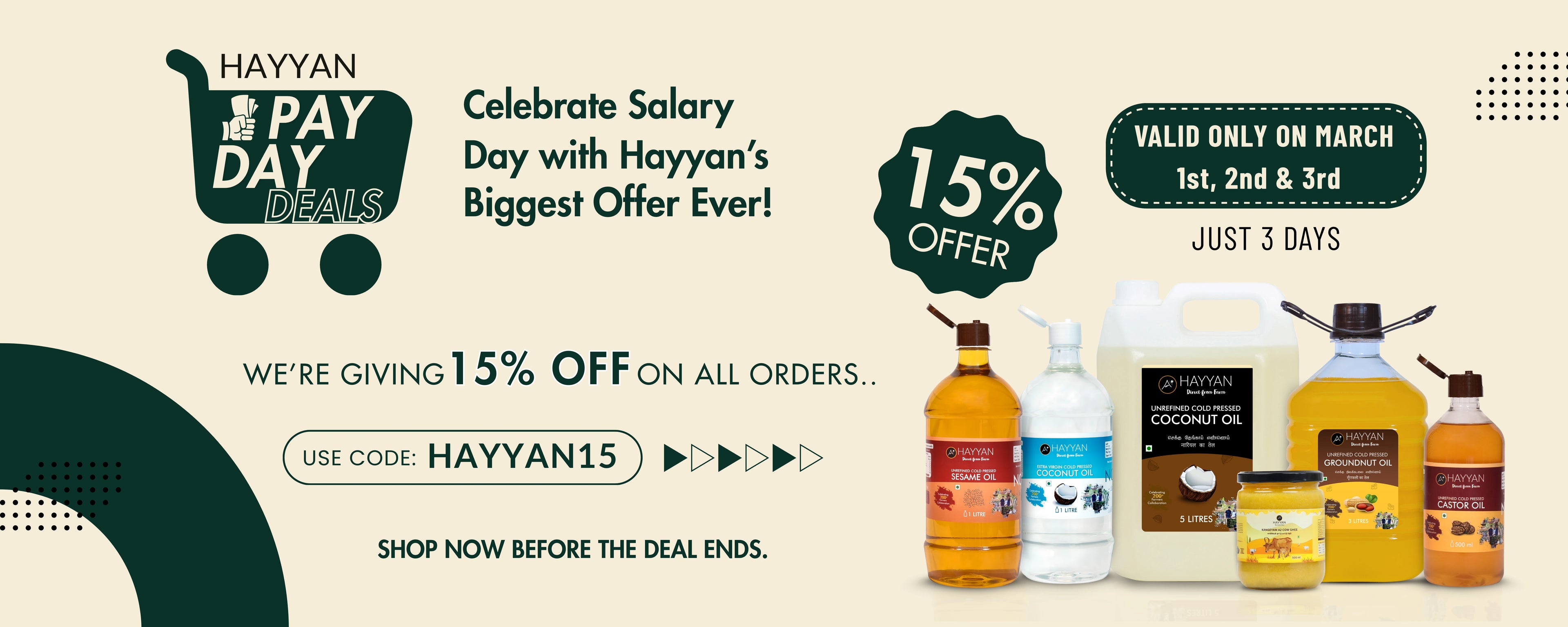Customer FavoriteHAYYAN Mega Oil Combo (Sesame 1L + Groundnut 5L + Coconut 1L)