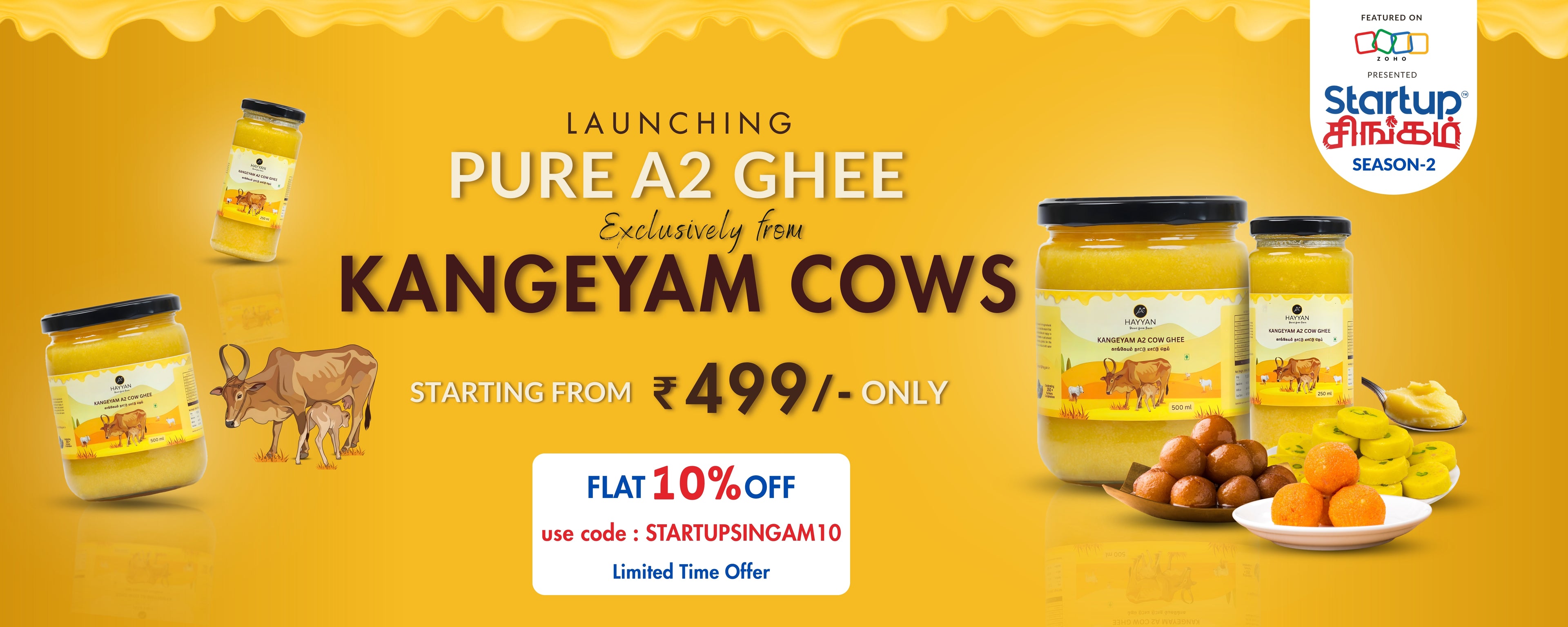Customer FavoriteUp to Rs. 201 offHayyan A2 Pure Kangeyam Cow Ghee 500 ml