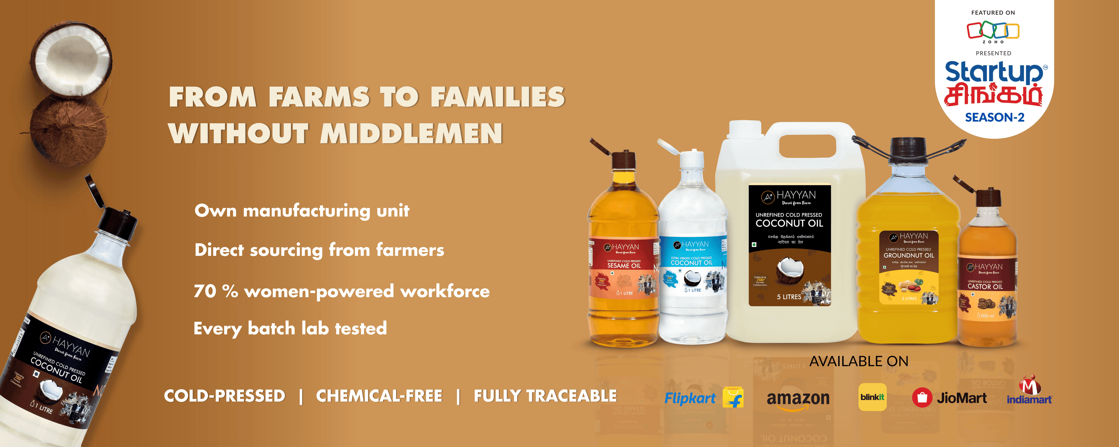 Customer FavoriteUp to Rs. 174 offHAYYAN Cold Pressed Unrefined Own Farm Coconut Oil ( Chekku / Ghani ) - 500 ml