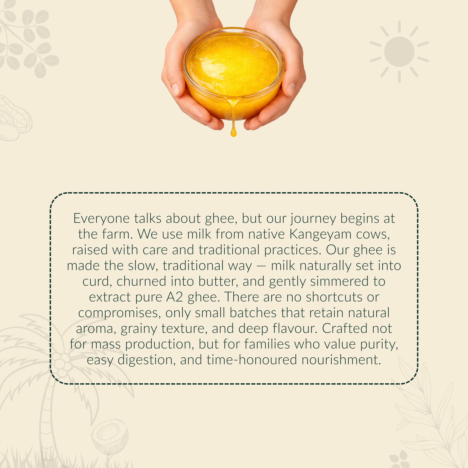 Experience the richness of pure Desi Cow Ghee in a convenient 50ml trial pack.