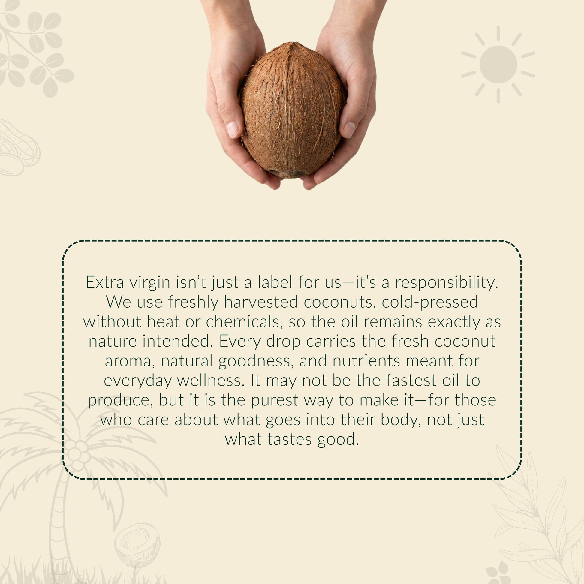 - HAYYAN Extra Virgin Coconut Oil is made from Fresh Coconuts & Extracted from Coconut Milk by Cold Press method.