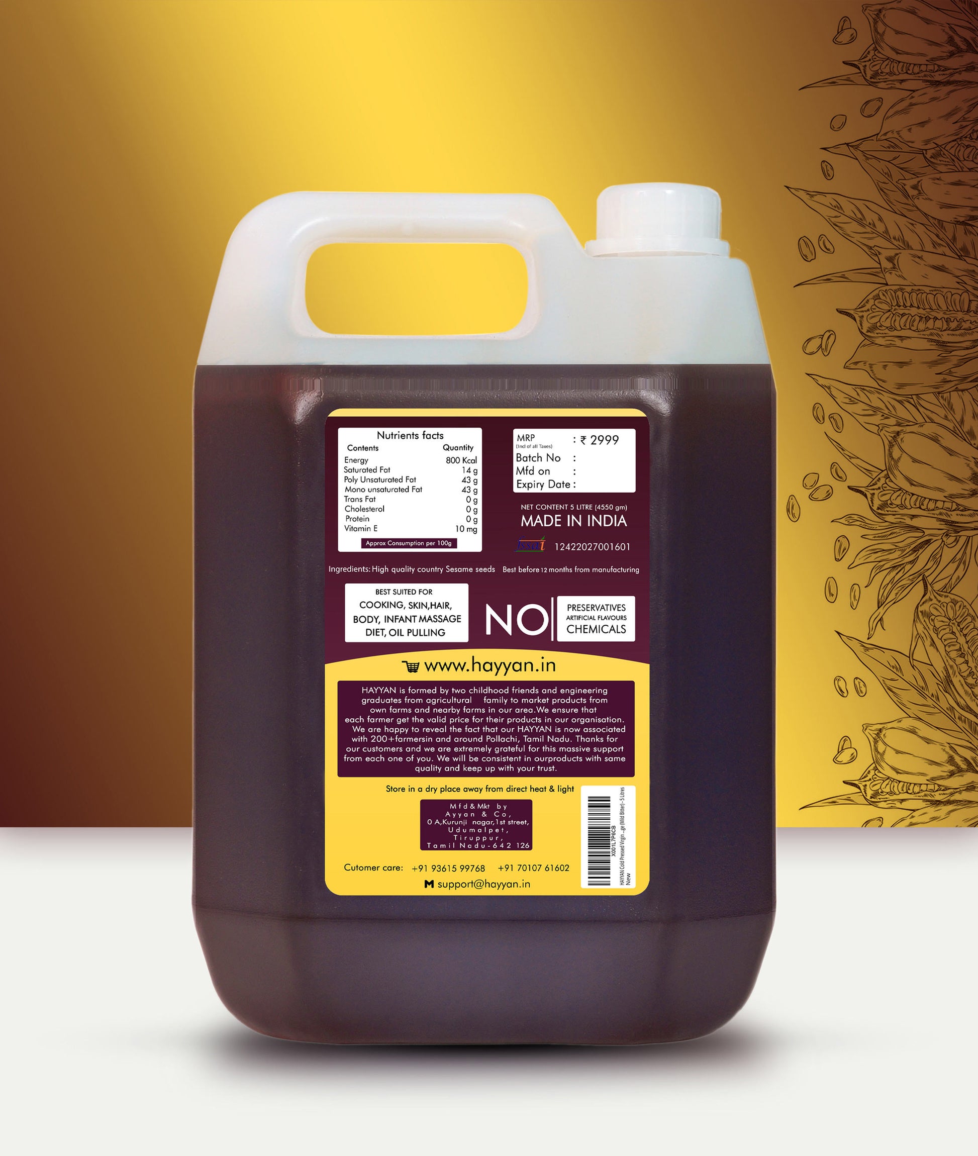 HAYYAN Cold Pressed black sesame Oil - 5 Litre