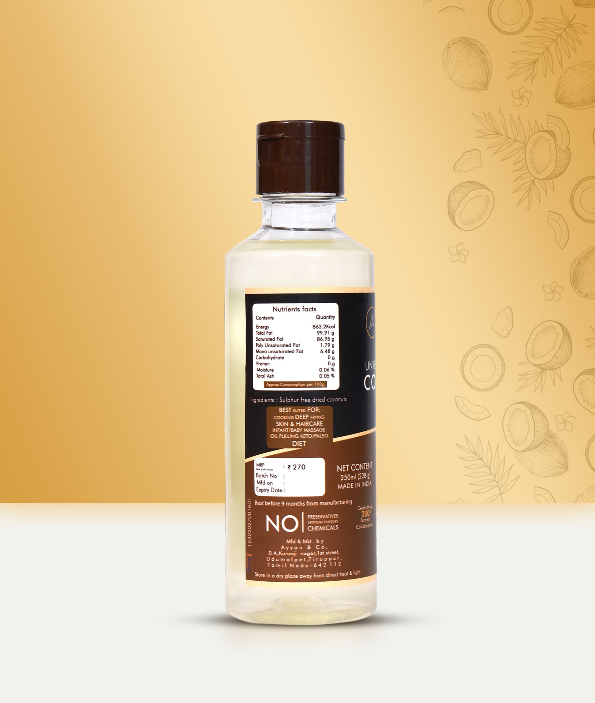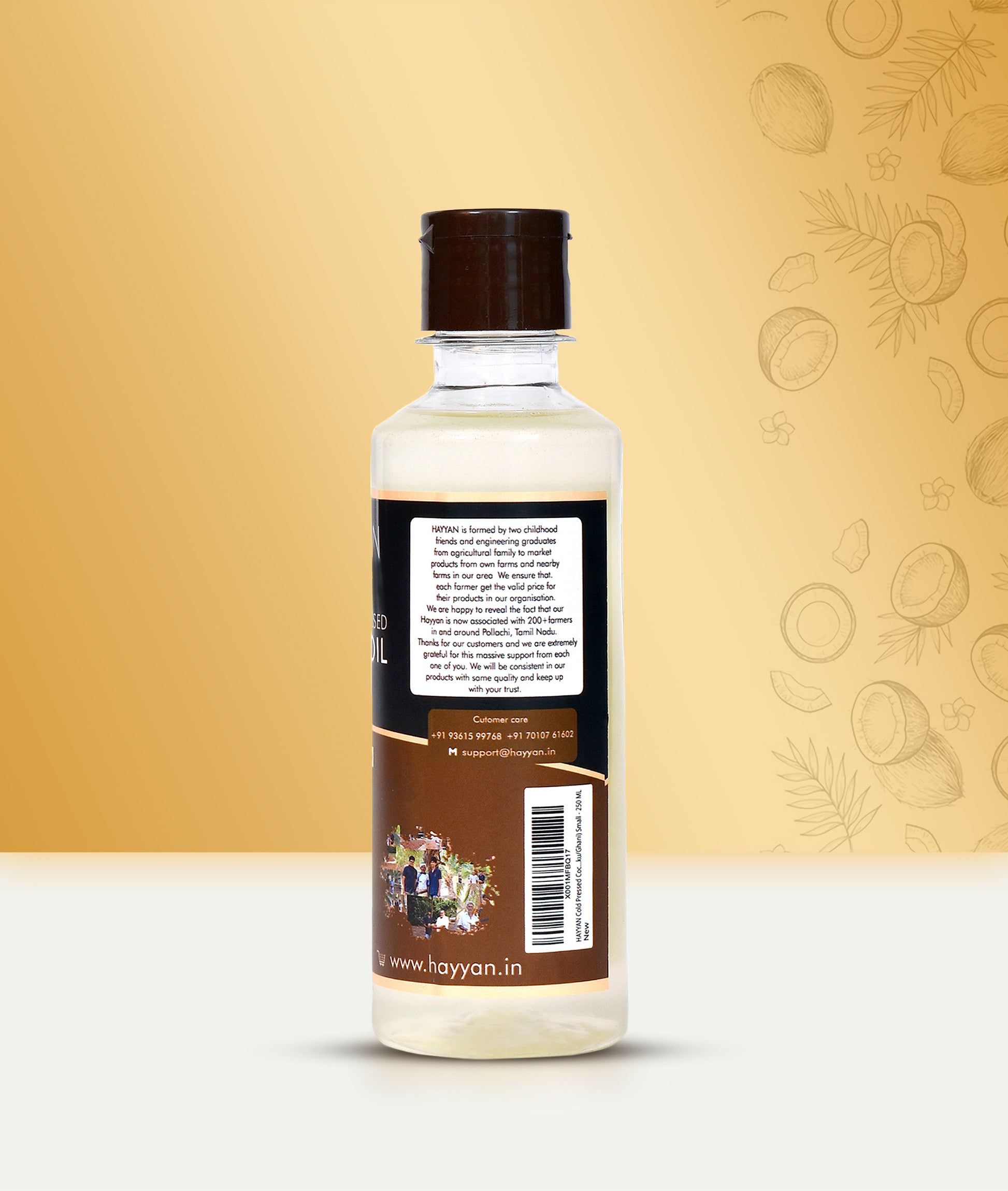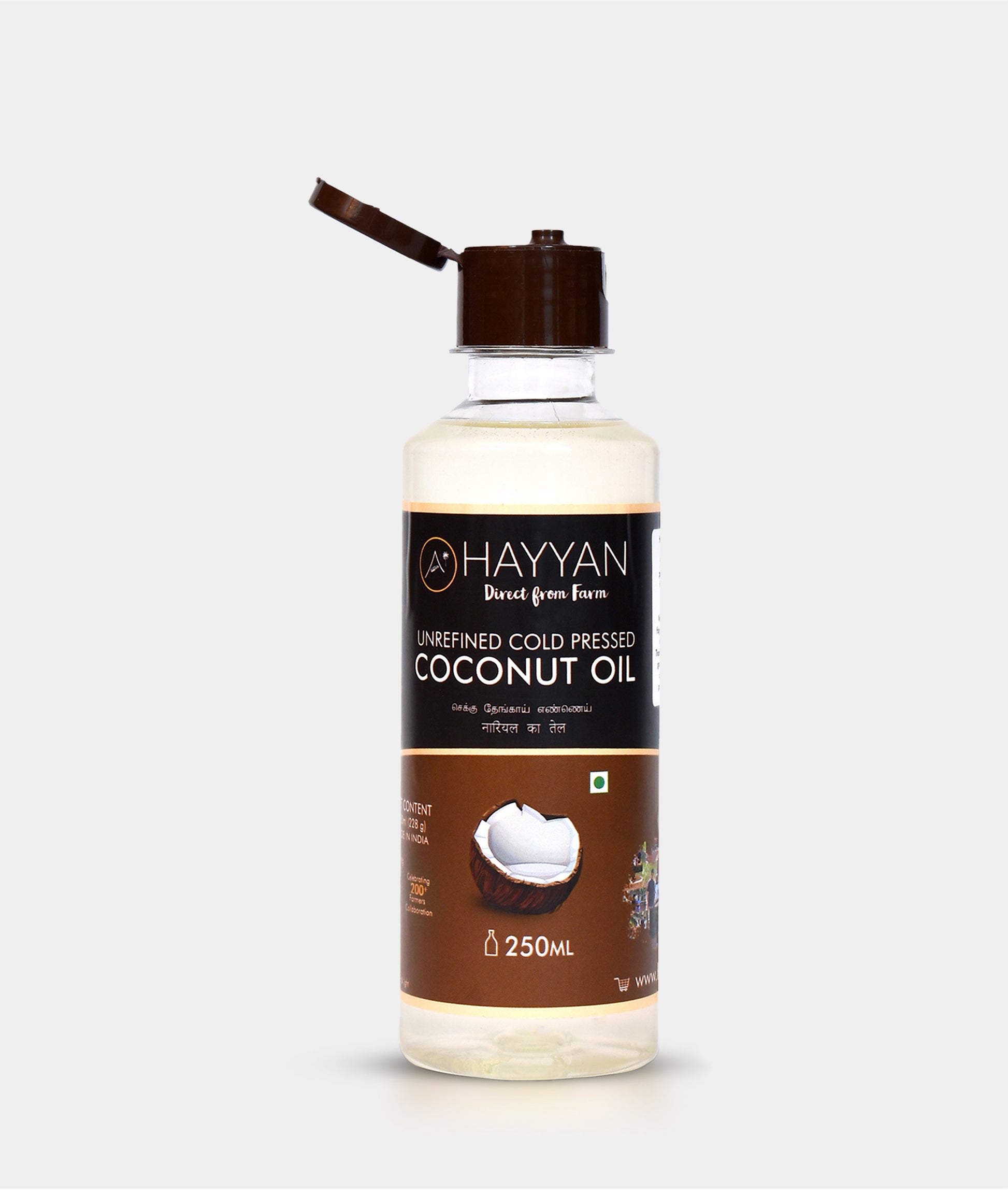 HAYYAN Cold Pressed Unrefined Own Farm Coconut Oil ( Chekku / Ghani ) - 250 Ml